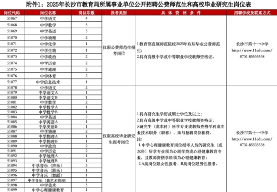 附件1:2025年长沙市教育局所属事业单位公开招聘公费师范生和高校毕业研究生岗位表.pdf