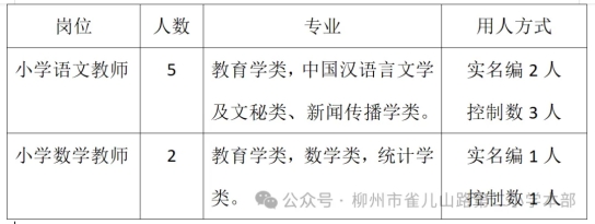 柳州市雀儿山路第二小学招聘岗位