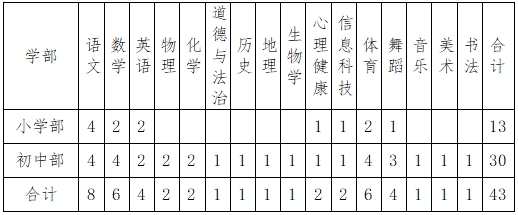 备注:1.应聘信息科技、体育、舞蹈、音乐、美术、书法学科岗位的,专业技能应较为突出。