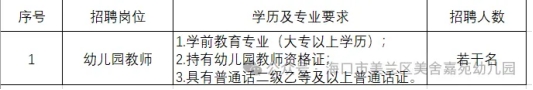 海口市美兰区美舍嘉苑幼儿园2024年秋季临聘教师招聘公告
