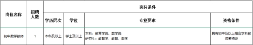 为加强我校教师队伍建设,切实做好学校教师队伍配备,西安高新区第四初级中学公开招聘数学教师1名。