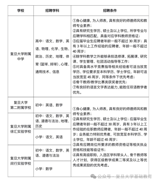 复旦大学2025年度基础教育优秀人才引进和教师招聘公告