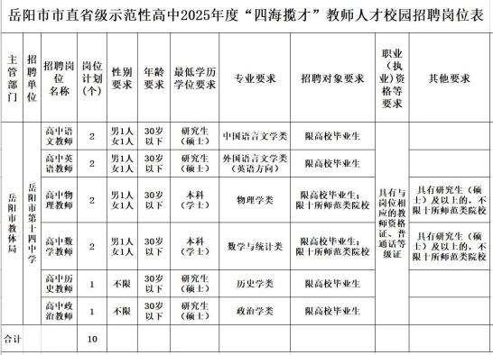 更多详情请关注岳阳市人力资源和社会保障局官网《岳阳市市直省级示范性高中2025年度“四海揽才”教师人才校园招聘公告》。
