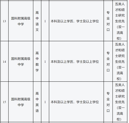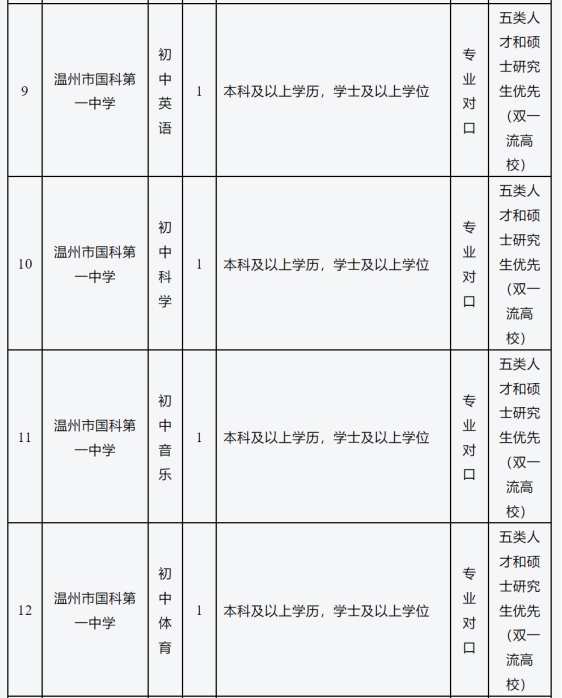 国科教育集团附属温州学校拟参照温州市龙湾区教育系统引进教育人才条件引进高层次人才,具体参照附件3《龙湾区(高新区)高层次教育人才引进和培育实施办法(试行)》人才类别“五类人才”类别标准招聘。