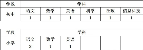 本次选聘初中教师6名,小学教师4名,学段与学科名额见下表: