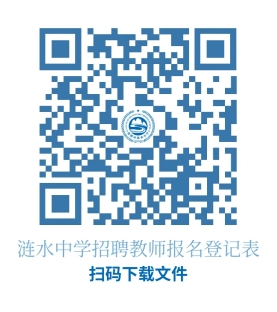 (2)网络报名。应聘者填写《涟水中学2025年招聘教师报名登记表》(登记表可扫码下载),将报名登记表(即个人简历)、学历证书、教师资格证书、普通话证书、获奖证书(不超过四张获奖)等拍照电子稿打包压缩成一个文件(文件名:应聘+学段学科+姓名),发送至电子邮箱lyslszx@163.com