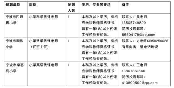 2.以上岗位由宁波东方众诚人才开发服务有限公司签订劳动合同劳务派遣至各用工学校。