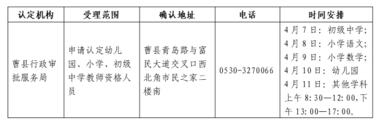 2025年曹县教师资格认定现场审核确认时间及确认地点一览表