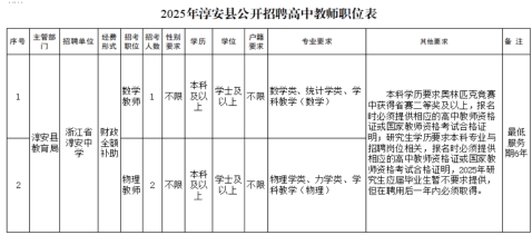 综合学校前期招聘的情况,根据《2025年淳安县公开招聘高中教师公告》(扩散!2025年淳安县公开招聘高中教师公告)的有关规定,淳安中学继续公开招聘数学、物理学科教师。