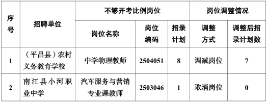 四川省巴中市2025年上半年公开考试招聘中小学教师岗位调减和取消招聘岗位的公告