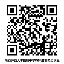 3.进入“笔试及心理测试”环节,参加者需提供个人纸质版简历1份(扫描下方二维码获取个人简历模板:陕西师范大学附属中学教师应聘简历模板,未使用简历模板视为简历不合格),纸质版简历请以“陕西师范大学附属中学教师应聘简历、身份证复印件、教师资格证书复印件、学历证书复印件、学位证书复印件、获奖证书复印件和简历中提及的可以证明本人能力水平的相关材料复印件”顺序装订成册。