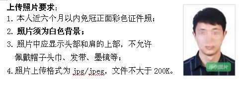 3.照片上传:照片将用于准考证以及考试合格证明,请考生上传照片时慎重选用。照片不合格的考生审核将不能通过。