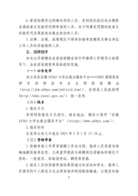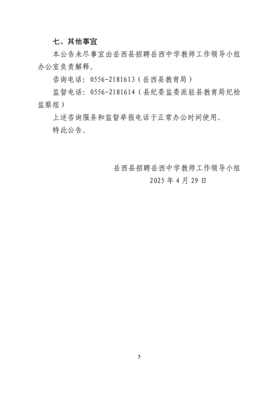 安徽省安庆市岳西县2025年第二轮高中教师招聘公告