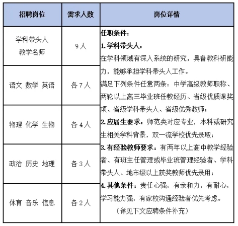 3.应聘教师需具有本科及以上学历,品学兼优,综合素质全面,专业基础能力强的本硕博应往届毕业生均可报名。