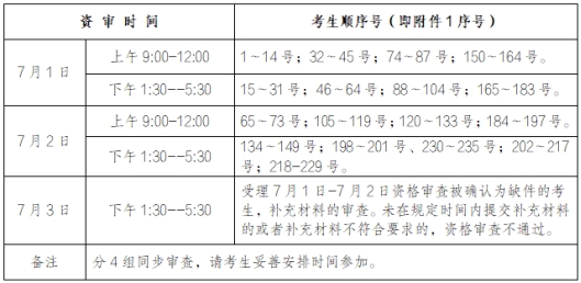 (二)资格审查时间(请考生按顺序号安排时间参加资格审查):
