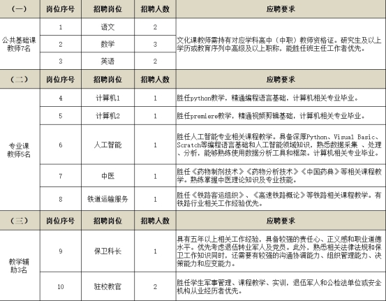 现因办学发展需要,需要招聘各学科教师及工作人员,现将有关事项公告如下: