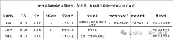 肥西县华南城幼儿园2025年秋季学期招聘公告