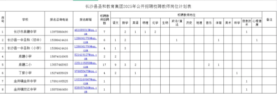 本次共招聘42位教师,岗位计划详见《长沙县圣和教育集团2025年公开招聘校聘教师岗位计划表》(招聘岗位数可视2025年9月学生实际到校人数进行调整)。