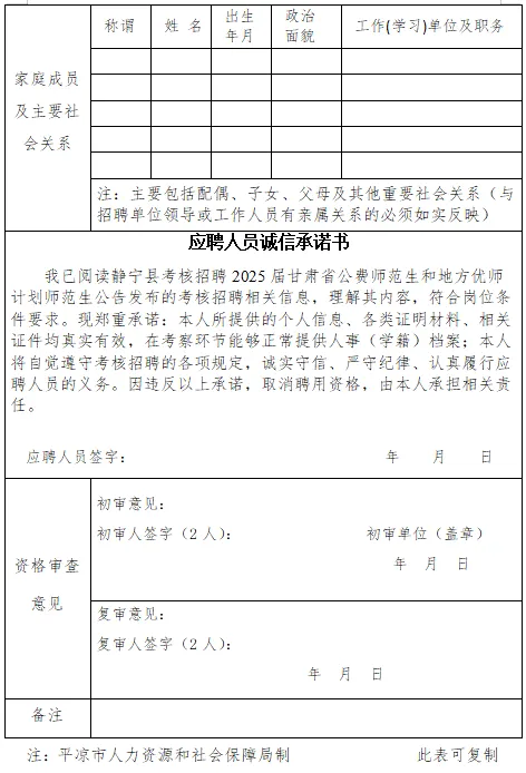 2.静宁县考核招聘2025届甘肃省公费师范生和地方优师计划师范生报名登记表