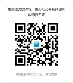 1.报名方式:应聘者请扫二维码填写《东坑镇2025年9月第五批公开招聘编外教师报名表》(详见附件)。