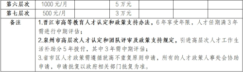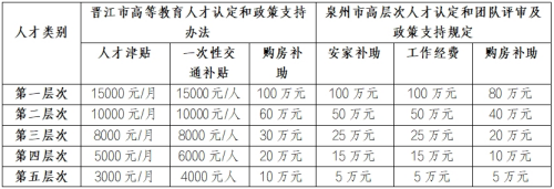 6.符合“泉州市高层次人才”“晋江市高等教育人才认定和政策支持办法”等各类人才申报条件的优秀人才,学校给予支持推荐申报,通过后可享受相应人才津贴、购房补贴、体检等。