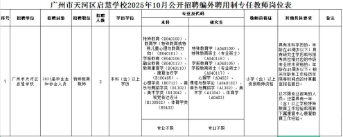 广州市天河区启慧学校2025年10月公开招聘编外聘用制专任教师公告