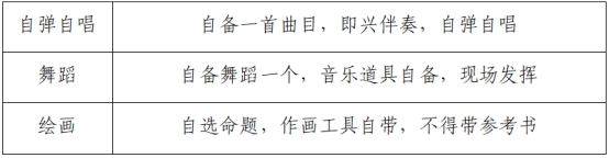 才艺展示:以下项目自选一项,时间3分钟以内。(分值20分)