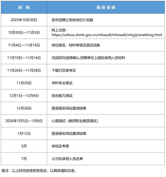 2025年10月30日,通过闵行区教育局官网和“闵行教育”微信公众号发布招聘公告和岗位需求等。