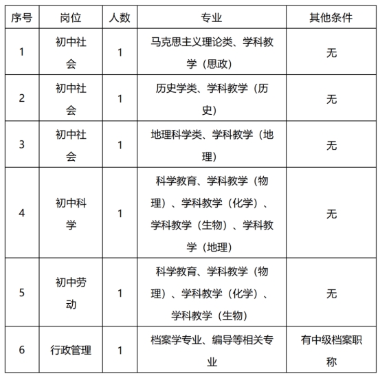 2、教师岗位具有适用的教师资格证书(初中及以上),行政管理岗位具有档案中级职称。