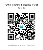 11月4日前,有意应聘人员可先将电子版简历、成绩单等个人材料以“应聘岗位+姓名+联系电话”形式命名,发送至育辉高中邮箱(yhgjzx2021@163.com),并填写《玉林市育辉高级中学教师岗位应聘报名表》,提交报名信息后扫描弹出的二维码加入招聘QQ群,最终以现场报名为准。