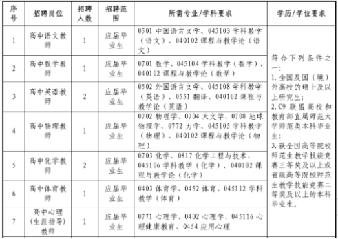 备注:“所需专业/学科要求”按照招聘岗位要求的硕士研究生学历/学位的学科专业目录设置,符合本科学历学位报考条件的,按照学科专业相同相近的对应原则。