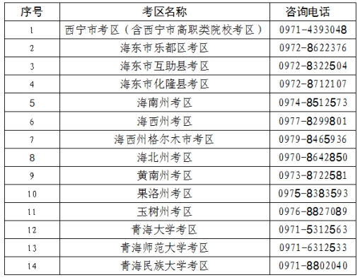 1.考区设置省内三所高校单独设置考区:青海大学考区;青海师范大学考区;青海民族大学考区。省内三所高校考区仅限本校全日制学习形式的在校本科及研究生报考,且不得跨校报考。三所高校的成人教育、自学考试、网络教育等其他非全日制学习形式的考生可根据个人实际情况就近选择其他考区。