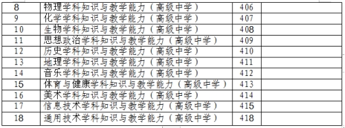 2.中小学教师资格考试(笔试)科目代码列表