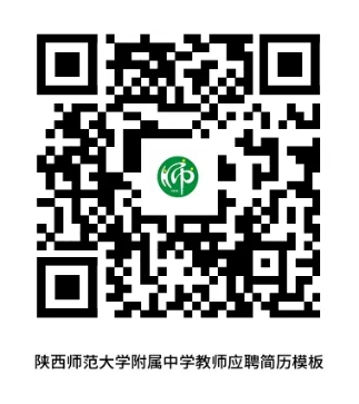 3.进入“笔试及心理测试”环节,参加者需提供个人纸质版简历1份(扫描下方二维码获取个人简历模板:陕西师范大学附属中学教师应聘简历模板,未使用简历模板视为简历不合格),纸质版简历请以“陕西师范大学附属中学教师应聘简历、身份证复印件、教师资格证书复印件、学历证书复印件、学位证书复印件、获奖证书复印件和简历中提及的可以证明本人能力水平的相关材料复印件”顺序装订成册。
