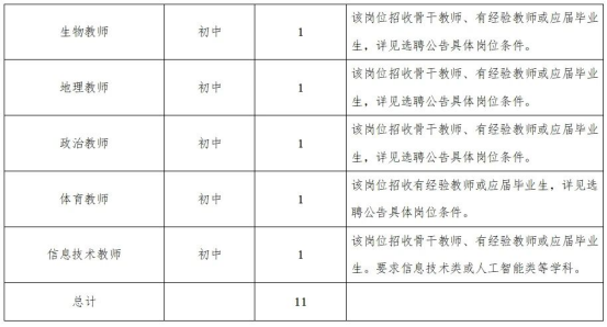 为服务保障好雄安新区疏解单位职工子女入学需求,根据工作需要,结合北京四中雄安校区第二实验学校实际情况,现决定公开选聘教职人员11名,具体事项公告如下。