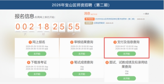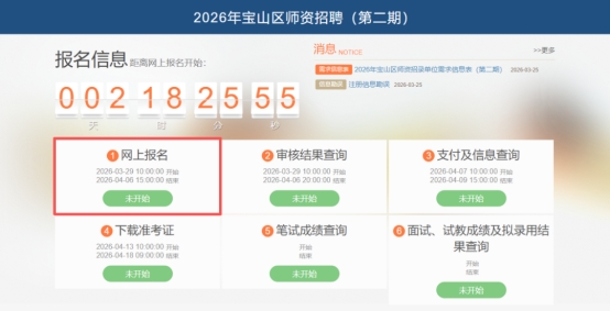 进入宝山区教师招聘平台,点击“网上报名”,即可进行线上注册,填报个人信息,选择学校具体岗位报名。
