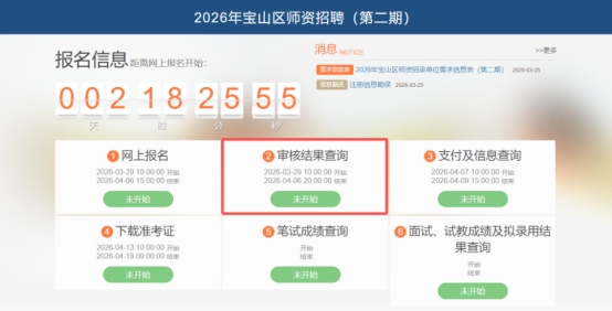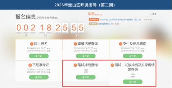 2、“学科测试”不合格,可在第二期重新参加该学科或其他学科的“学科测试”,合格后进入面试环节。应聘者已参加2026年宝山区师资招聘(第一期)“综合测试”,成绩不合格者不得参加第二期师资招聘。