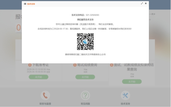 扫码关注技术支持公众号,届时会点对点推送后续的各类通知(报名考试招聘期间请不要取消关注公众号)
