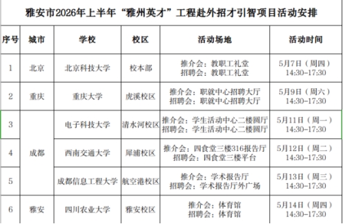 为深入实施新时代人才强区战略,助力经济社会高质量发展,拟开展名山区2026年上半年“雅州英才”工程赴外招才引智活动,引进一批高层次人才和急需紧缺专业人员到名工作。现将有关事项公告如下: