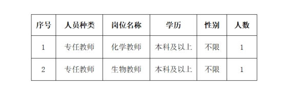 因学校实际用人需求,现招聘高中化学教师1名、高中生物教师1名。