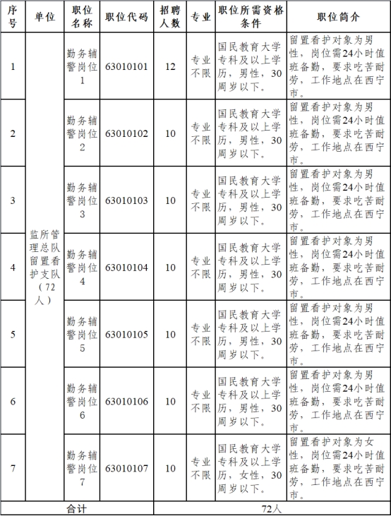 根据《青海省公安机关警务辅助人员管理条例》及相关管理办法规定,青海省公安厅决定面向社会公开招聘留置看护警务辅助人员(以下简称“辅警”),现将有关招聘事项公告如下:
