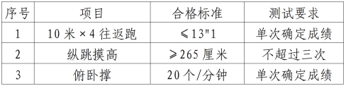 未按规定时间、地点参加体能测试的,视为自动放弃报考资格。体能测试单项不合格或未按要求参加体能测试的人员,不能进入笔试。未通过体能测试人员,笔试费用全额退回。