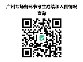 3.笔试成绩。笔试成绩采取百分制,成绩四舍五入后保留2位小数,笔试合格分数线一般为60分,笔试合格人员中从高分到低分按岗位招聘人数5倍比例入围资格复审和面试环节。如招聘岗位考生笔试成绩60分以上人数不足岗位招聘人数5倍的,该岗位笔试合格分数线为55分。岗位笔试合格人员未达5倍比例的全部入围资格复审和面试环节,同分者并列进入。成绩不达笔试合格分数线的不能入围资格复审和面试环节,笔试成绩按40%计算入总成绩。笔试结束次日通过报名系统或“广州专场各环节考生成绩和入围情况查询二维码”(简称二维码)公布笔试成绩及入围资格复审情况。二维码如下图: