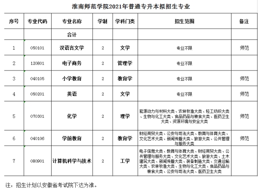 淮南师范学院2023年普通高校专升本拟招生方案的通知