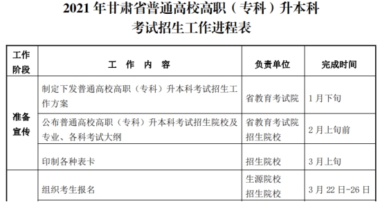 2021年甘肃省专升本考试招生工作时间表