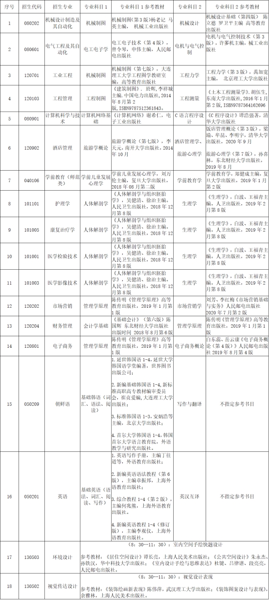 1.非艺术类专业测试科目见下表,两个科目合在一起通过网上测试平台考试,卷面分值共200分,专业科目1和专业科目2各占100分;测试时长共120分钟。