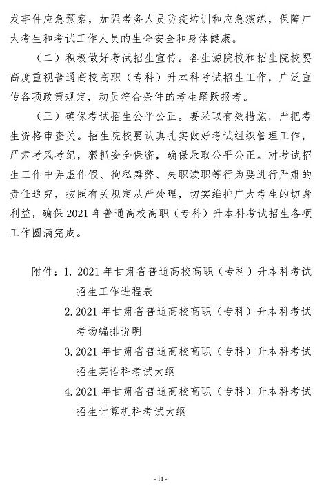 关于印发《2021年甘肃省普通高校高职(专科)升本科考试招生工作方案》的通知