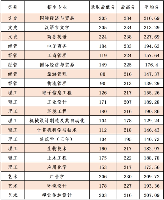 学院设有人文学院、信息工程学院、经法学院、管理学院、生命科学与材料化学学院、设计艺术学院、机械工程与自动化学院、建筑工程学院和基础学院等九个下属学科性二级学院,54个本科专业,涵盖经济学、法学、教育学、文学、管理学、理学、工学、医学、艺术学等学科,基本形成了门类齐全、结构合理、优势互补的学科专业体系。学院面向全国招生,现有全日制在校生11400多名。