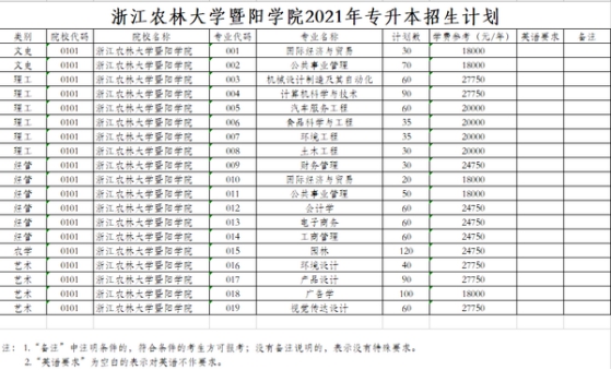 2021年浙江农林大学暨阳学院专升本首轮投档分数线及征求志愿公告