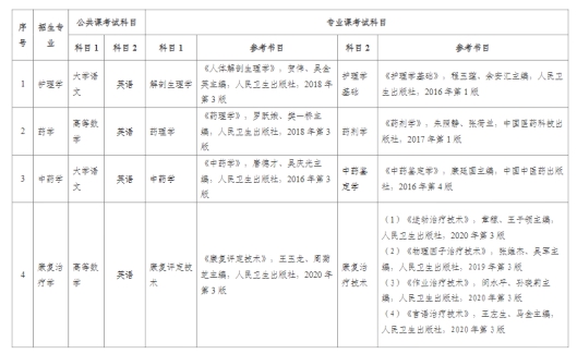 安徽医科大学2021年专升本招生考试科目及专业课参考书目